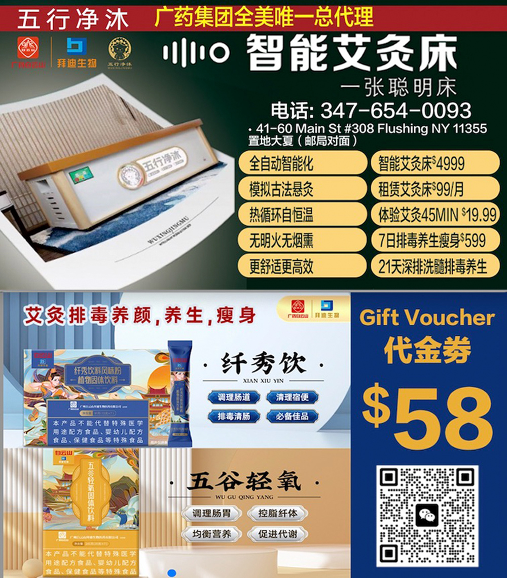 智能艾灸床 一张聪明床 电话:347-654-0093 41-60 Main St #308 Flushing NY 11355 置地大夏(邮局对面)